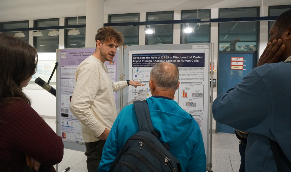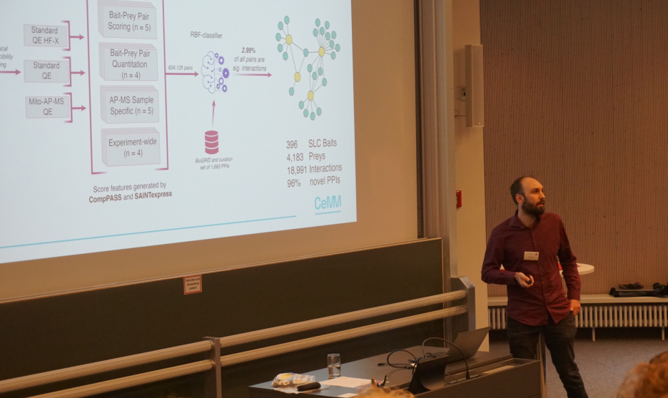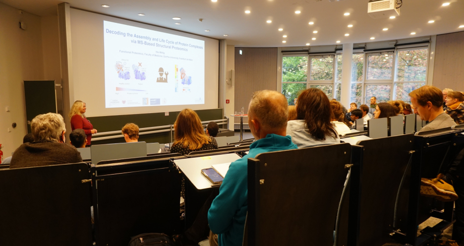 SFB 1381 PI Pitter Huesgen (projects Z01 and B13) introduced the SFB 1381 before three invited speakers presented their most recent scientific findings: Florian Stengel from the University of Konstanz, Ilka Wittig from Goethe University Frankfurt am Main, and Fabian Frommelt from CeMM – the Research Center for Molecular Medicine in Vienna. Their insightful presentations highlighted cutting-edge methodologies and novel applications of mass spectrometry in the study of protein complexes, sparking lively and stimulating discussions.